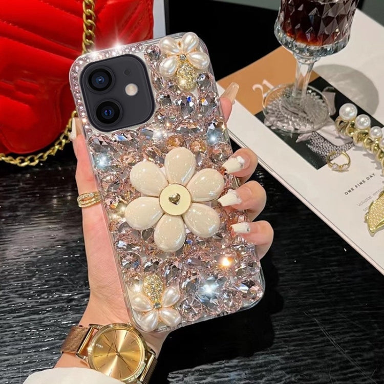 Funda para Teléfono iPhone 11 con Soporte de Girasol y PC con Diamantes Colocados a Mano (Blanco)