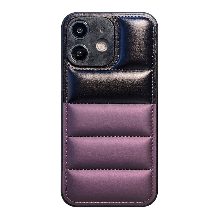 Funda para Teléfono iPhone 11 Chaqueta de Plumón con Bloques de Color (Negro Morado)