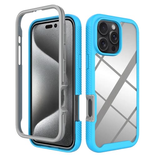 Funda para iPhone 16 Pro Max Carcasa PC y TPU Color Sólido Starry Sky Película Pet (Azul Cielo)