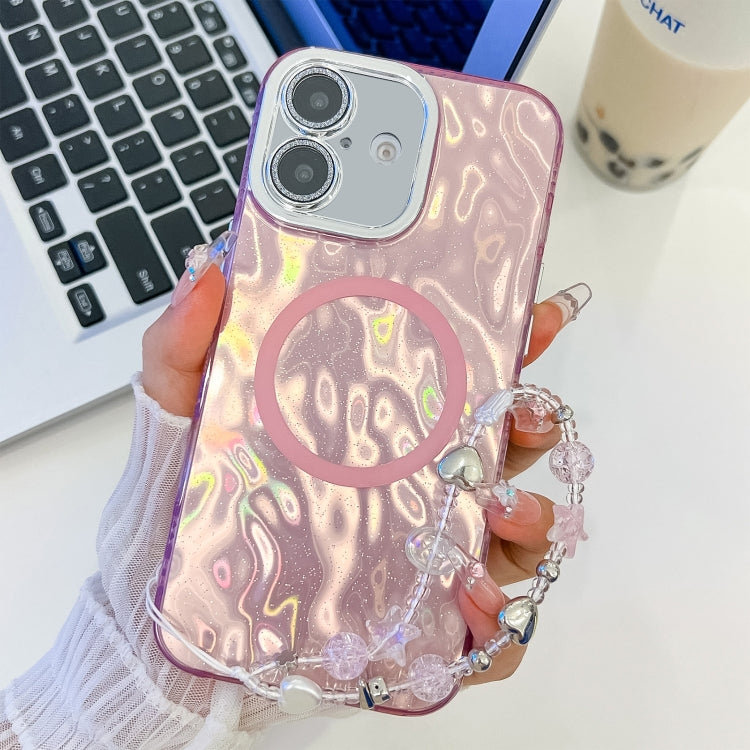 Funda para Teléfono TPU Magsafe iPhone 16 Película Lente Brillante (Ondas de Agua Rosadas)