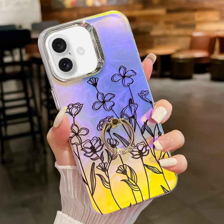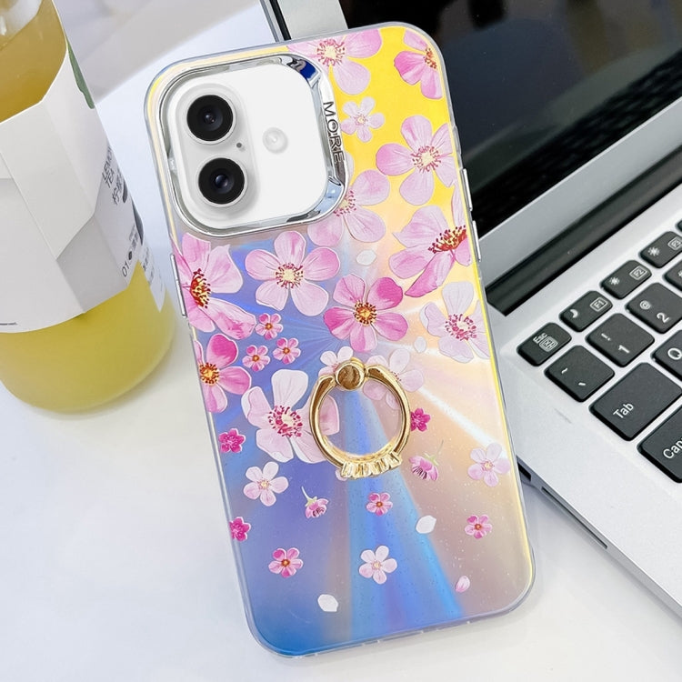 Caja de Teléfono TPU para iPhone 16 con Soporte de Anillo y Flor Láser de Galvanoplastia (Flor Ah6)