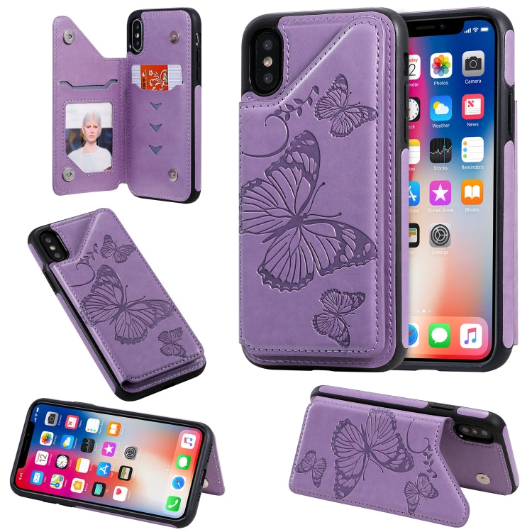 Funda Protectora iPhone X y Xs Estampado Mariposas Soporte Ranuras Tarjetas Marco Fotos (Azul)