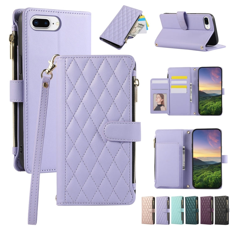 Funda de Cuero Tipo Billetera con Cremallera y Diseño Rombal para iPhone 7 Plus/8 Plus (Morado)