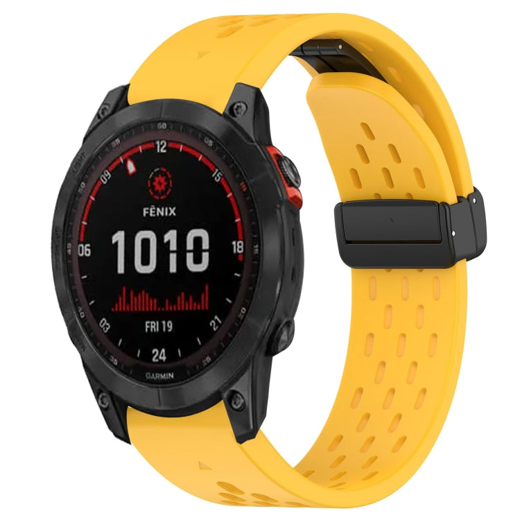 Correa de Reloj de Silicona para Garmin Fenix 7X 26mm con Orificio y Hebilla Plegable (Amarillo)