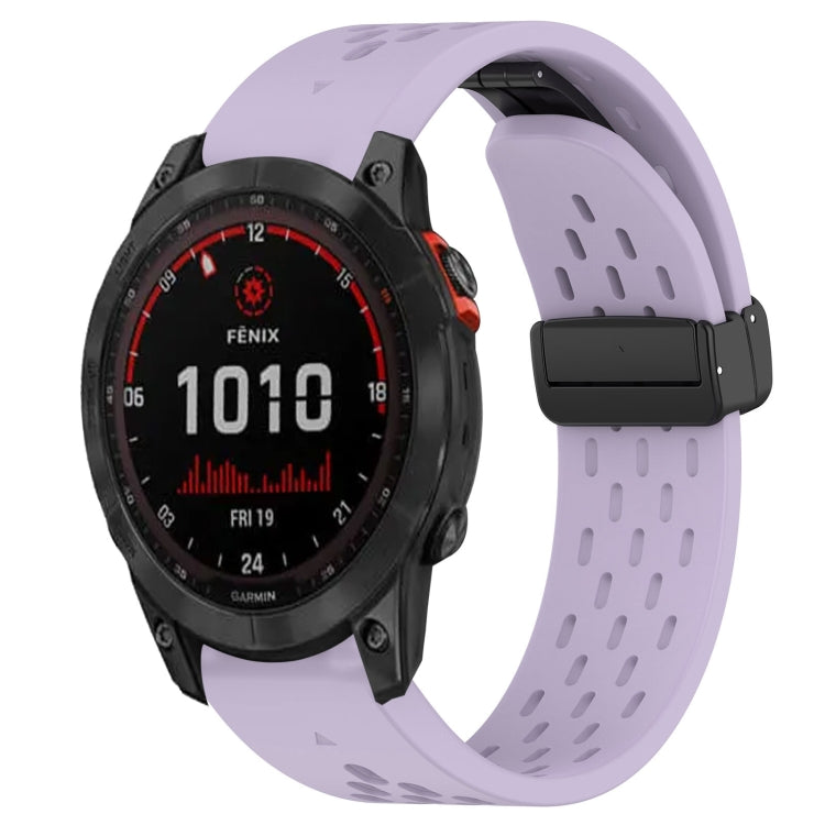 Correa de Reloj de Silicona para Garmin Fenix 7X Solar 26mm con Orificio y Hebilla Plegable (Púrpura)