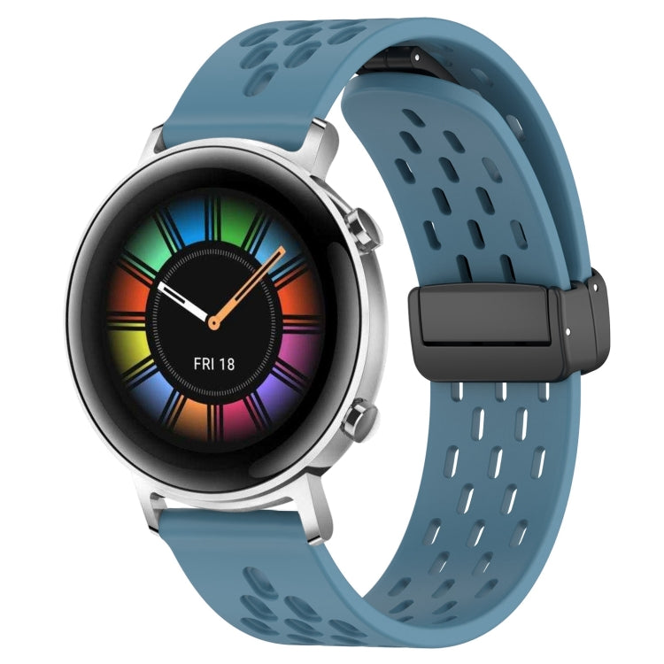 Correa de Reloj de Silicona para Huawei Watch GT2 42mm 20mm con Cierre Magnético Plegable (Azul)
