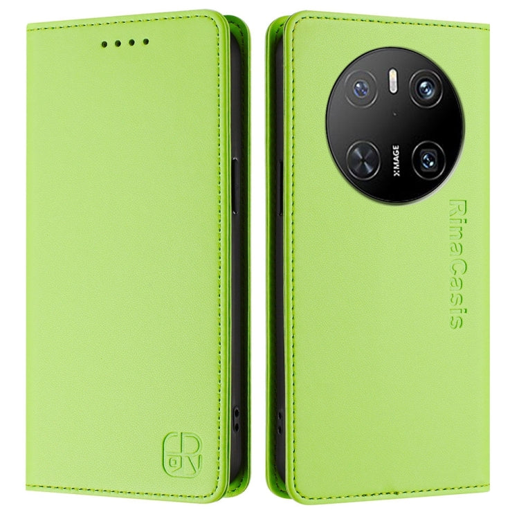 Funda de Cuero Huawei Mate 70 Rc01 con Doble Pliegue y Succión Magnética Rfid (Verde Hierba)