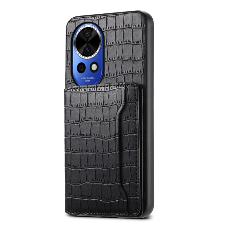 Estuche para Huawei Nova 12 con Diseño de Bolsa para Tarjetas y Textura de Cocodrilo (Negro)