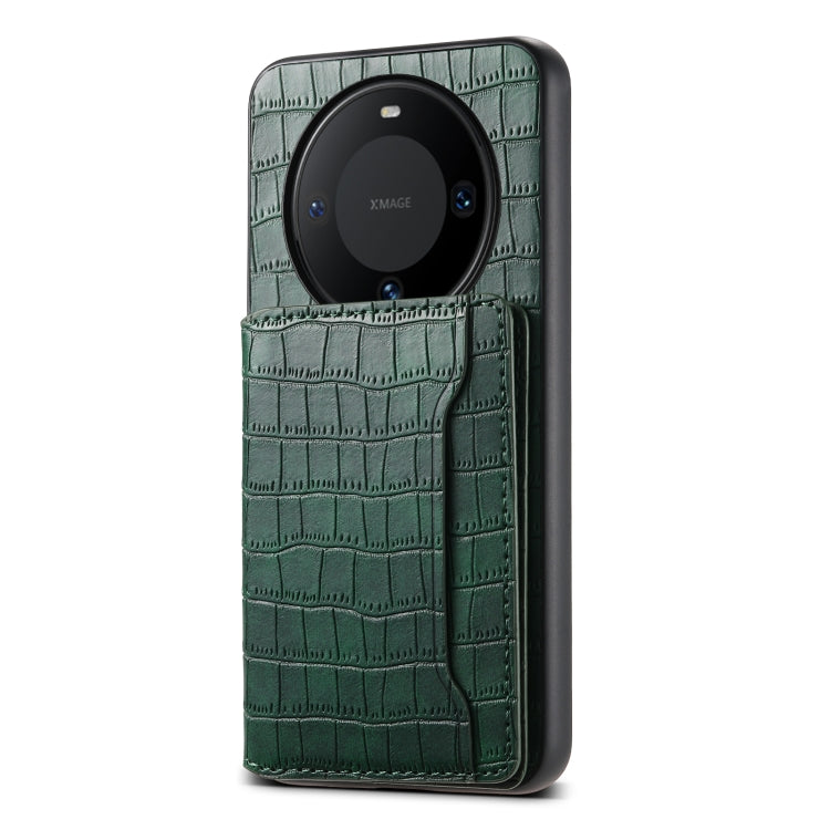 Funda para Huawei Mate 60 con Diseño de Bolsa para Tarjetas y Textura de Cocodrilo (Verde)
