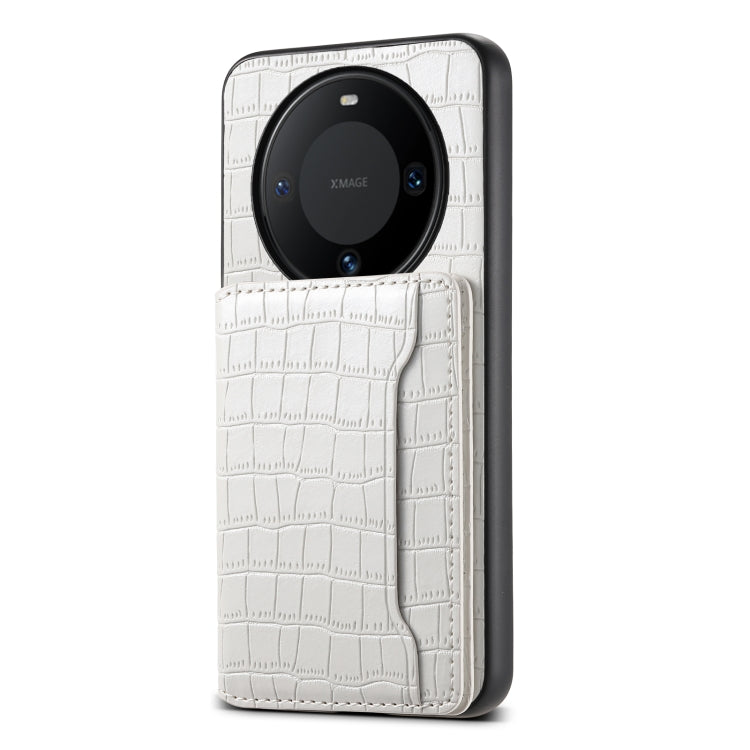 Estuche para Huawei Mate 60 con Diseño de Bolsa para Tarjetas y Textura de Cocodrilo (Blanco)