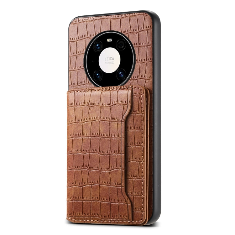 Funda para Huawei Mate 40 Pro con Diseño de Bolsa para Tarjetas y Textura de Cocodrilo (Marrón)