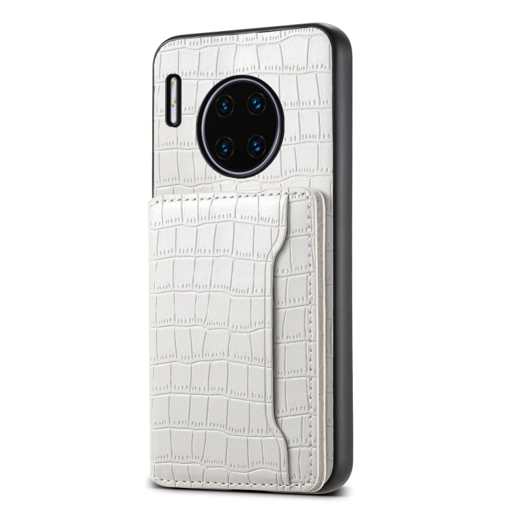 Funda para Huawei Mate 30 Pro con diseño de bolsa para tarjetas y textura de cocodrilo (Blanco)