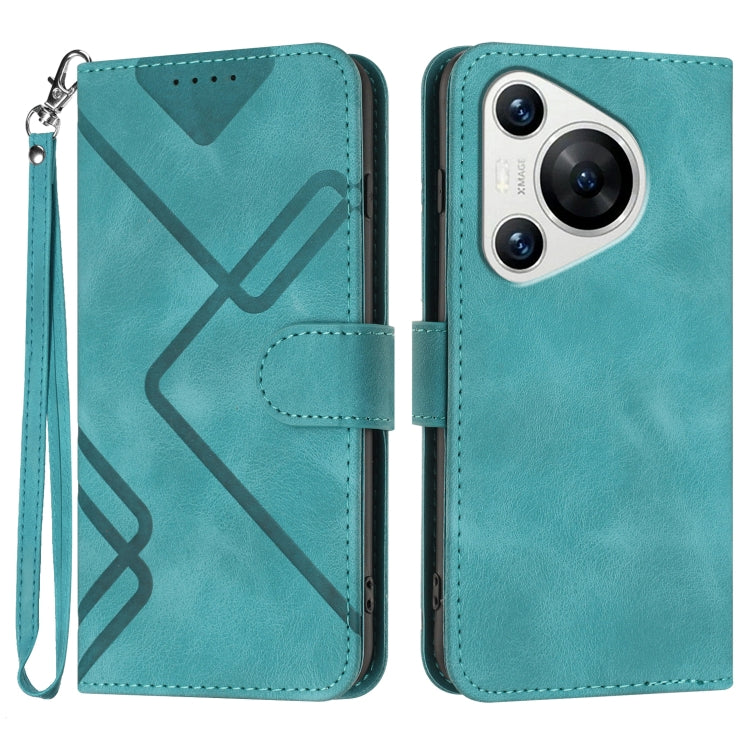 Funda de Cuero para Huawei Pura 70 con Patrón de Líneas y Sensación de Piel (Azul Real)