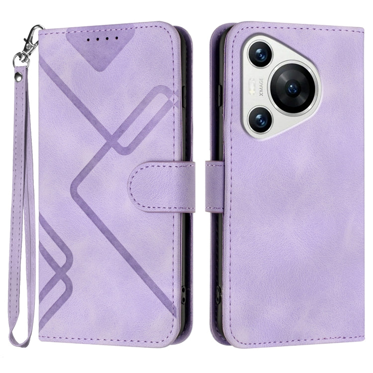 Funda de Cuero para Huawei Pura 70 Pro/70 Pro+ con Patrón de Línea (Púrpura Claro)