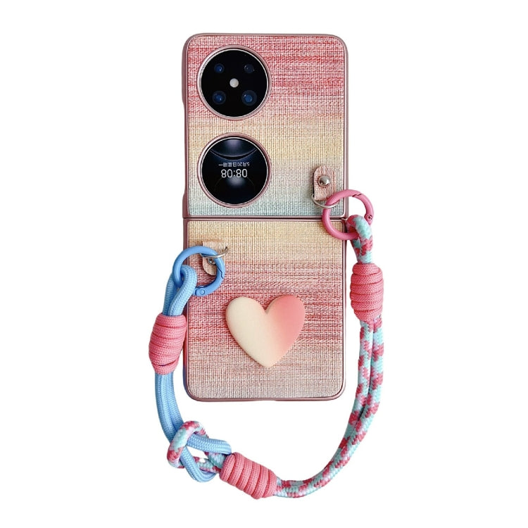 Funda para Huawei P50 con Textura de Cuero y Correa de Color (Rosa)