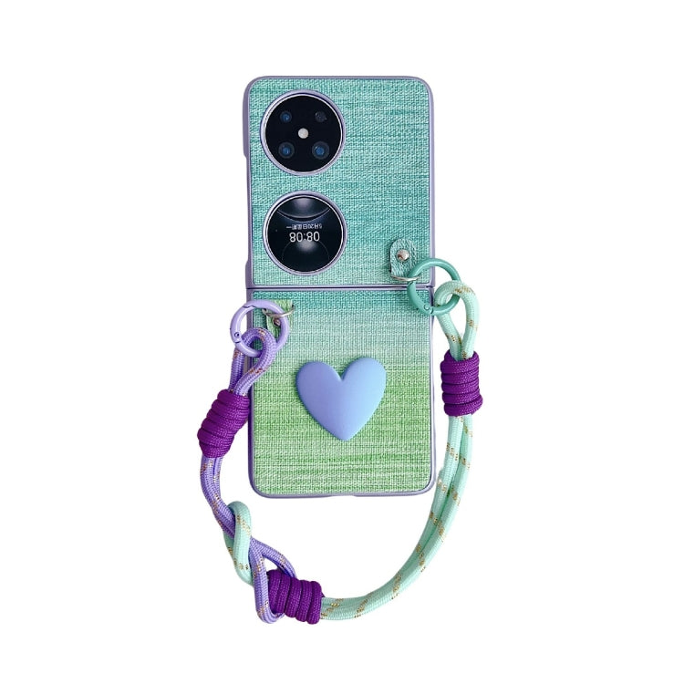 Funda para Teléfono Huawei P50 Textura de Cuero Ilusorio para PC con Correa (Verde)