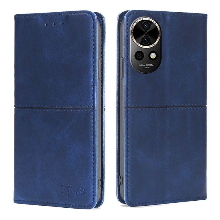 Funda de Cuero Magnética para Huawei Nova 12I 4G con Textura de Vaca (Azul)