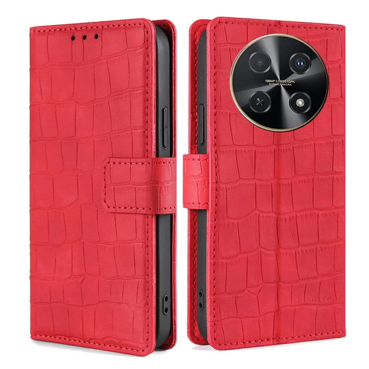 Funda para Huawei Nova 12I 4G de Cuero con Cierre Magnético y Piel de Cocodrilo (Rojo)