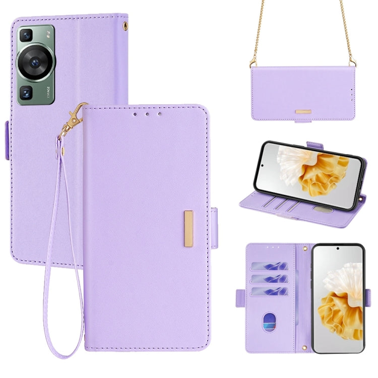 Funda de Cuero para Huawei P60 y P60 Pro con Cadena Cruzada (Púrpura)