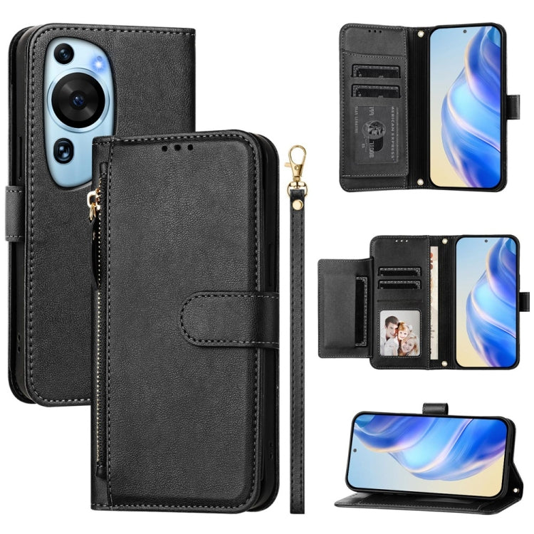 Funda de Cuero con Cremallera y Ranuras para Tarjetas para Huawei Mate 60 Pro/60 Pro+ (Negra)