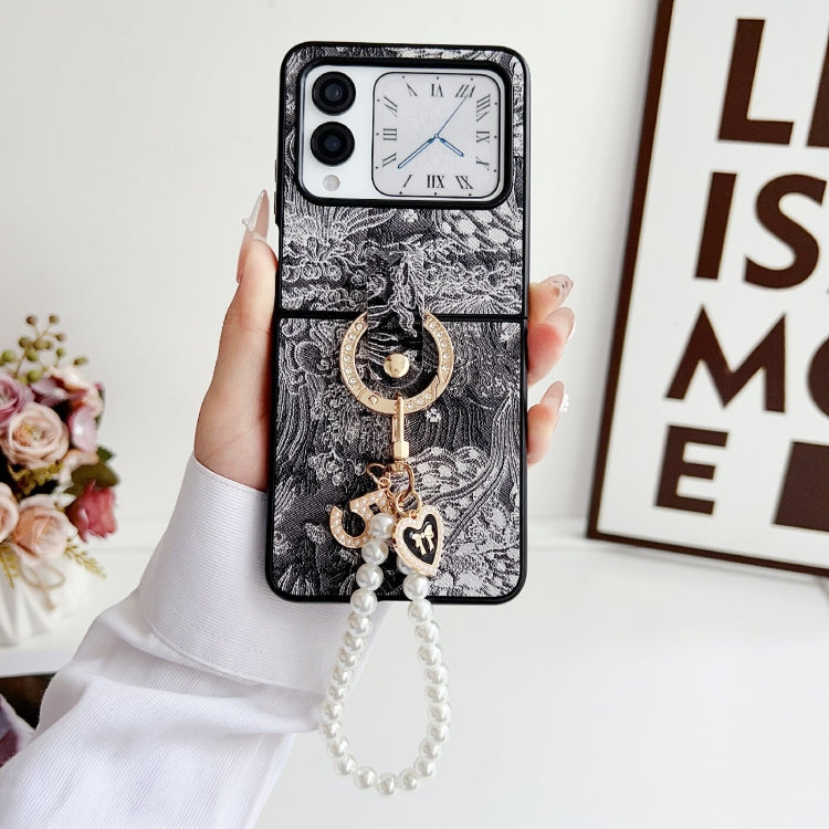 Funda para Teléfono Huawei P50 Pocket con Textura de Tejido y Correa (Negra)