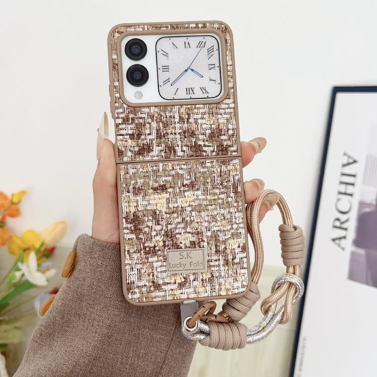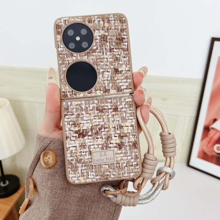 Funda para Teléfono Huawei P50 Pocket Textura de Tejido con Correa (Marrón)
