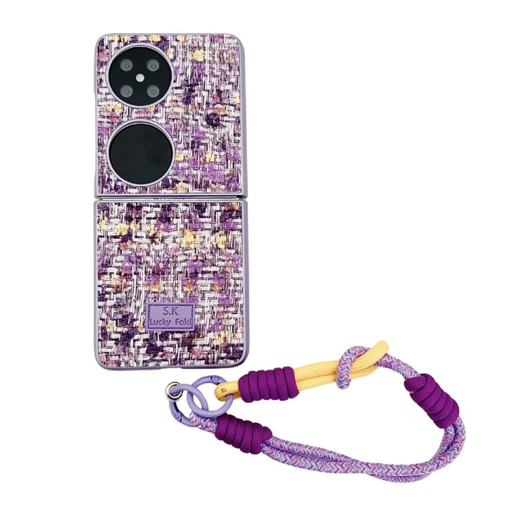 Funda para Teléfono Huawei P50 Pocket con Textura de Tejido y Correa (Púrpura)