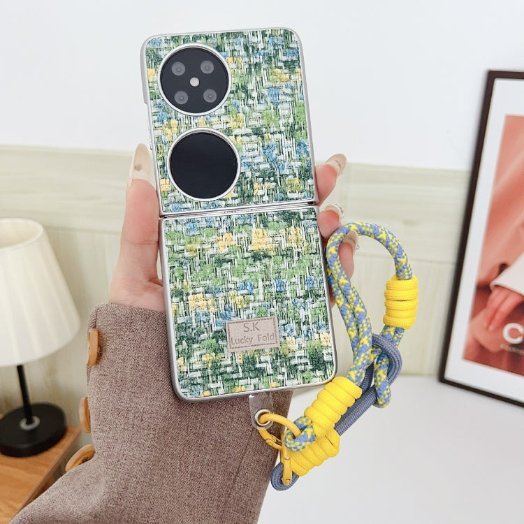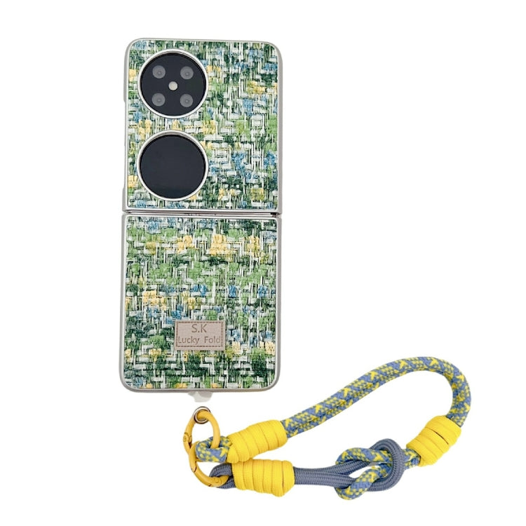 Funda para Teléfono Huawei P50 Pocket Textura Tejido Correa (Verde)
