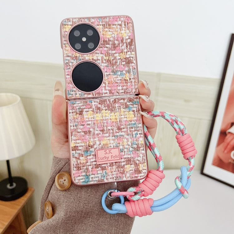 Funda para Teléfono Huawei Pocket 2 con Textura de Tejido y Correa (Rosa)