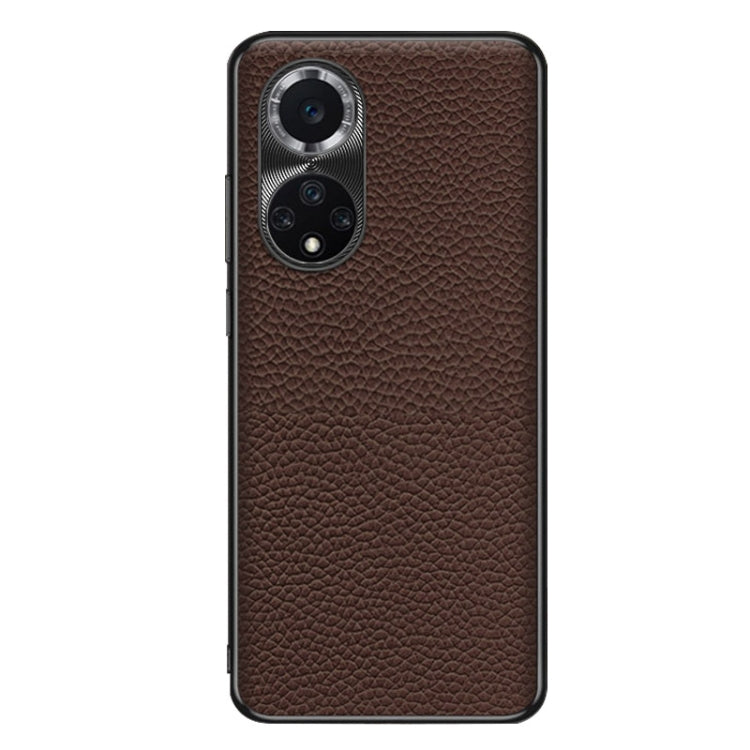 Funda de Teléfono Huawei Nova 9 con Textura Litchi de Cuero Genuino (Café)