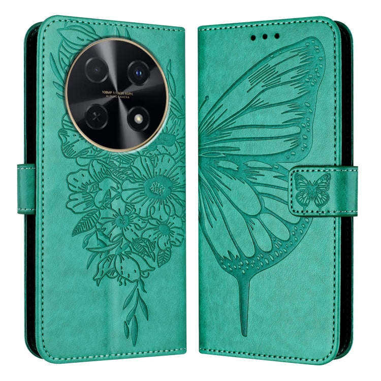 Funda de Cuero para Huawei Nova 12I 4G con Mariposa en Relieve (Verde)