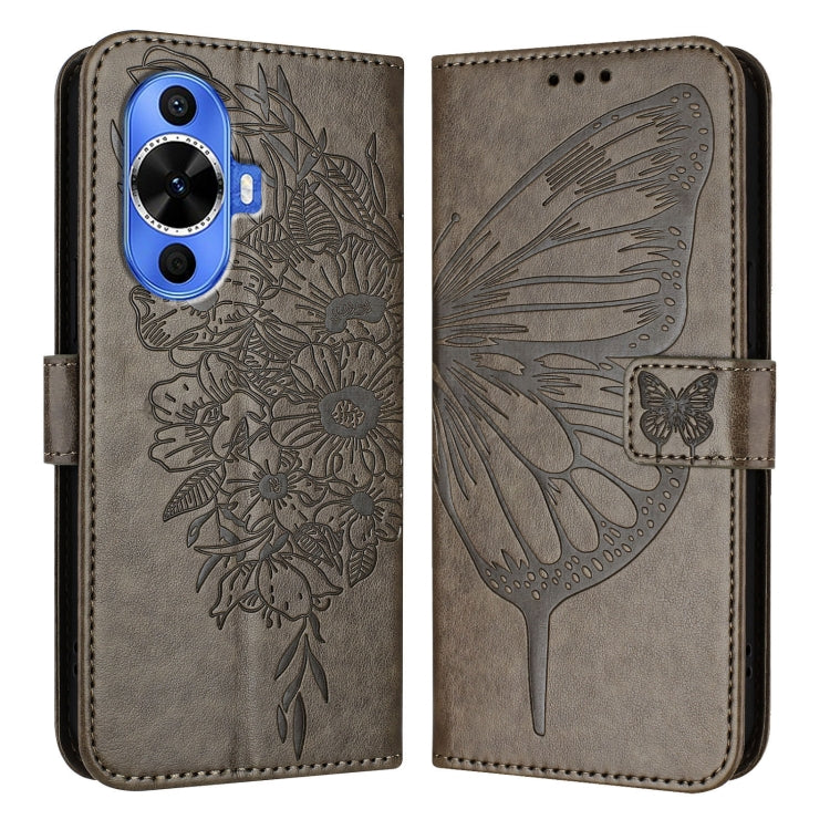 Funda de Cuero para Huawei Nova 12S 4G con Mariposa en Relieve (Gris)