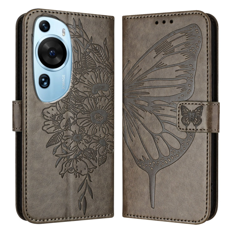 Funda de Teléfono Huawei P60 Cuero con Mariposa en Relieve Artístico (Gris)