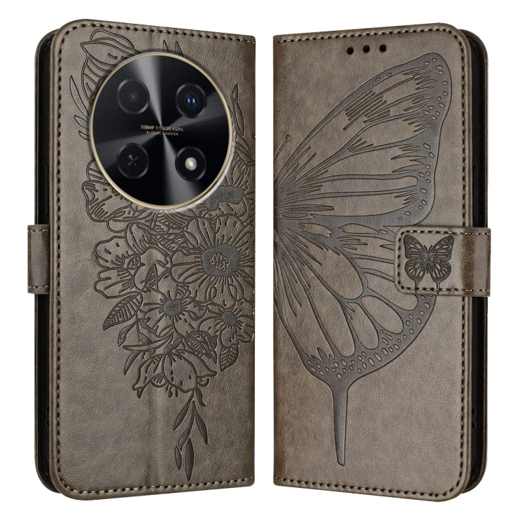 Funda de Cuero para Huawei Nova 12I 4G con Mariposa en Relieve (Gris)