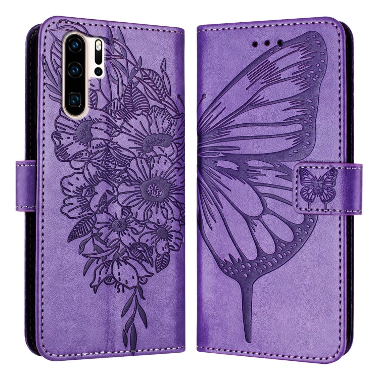Funda de Cuero para Huawei P30 Pro con Mariposa en Relieve (Púrpura)