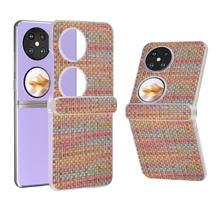Funda 3 en 1 para Huawei Pocket 2 con Marco Translúcido Esmerilado y Textura Tejida (Rosa)