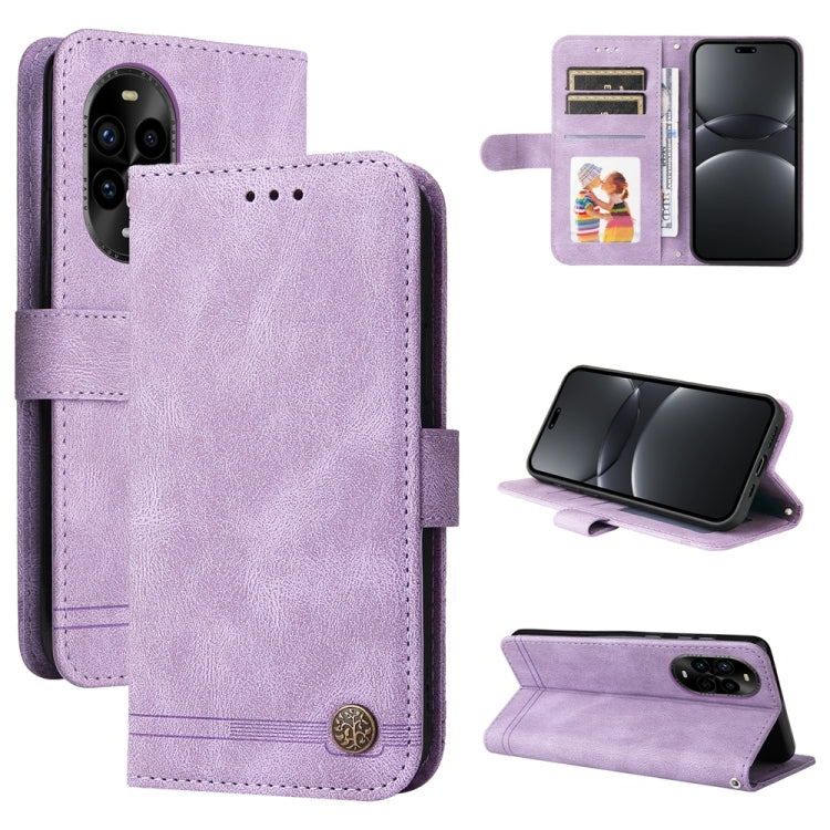 Funda de Cuero con Botones de Metal y Diseño Árbol de la Vida para Huawei Nova 13 Pro (Morado)