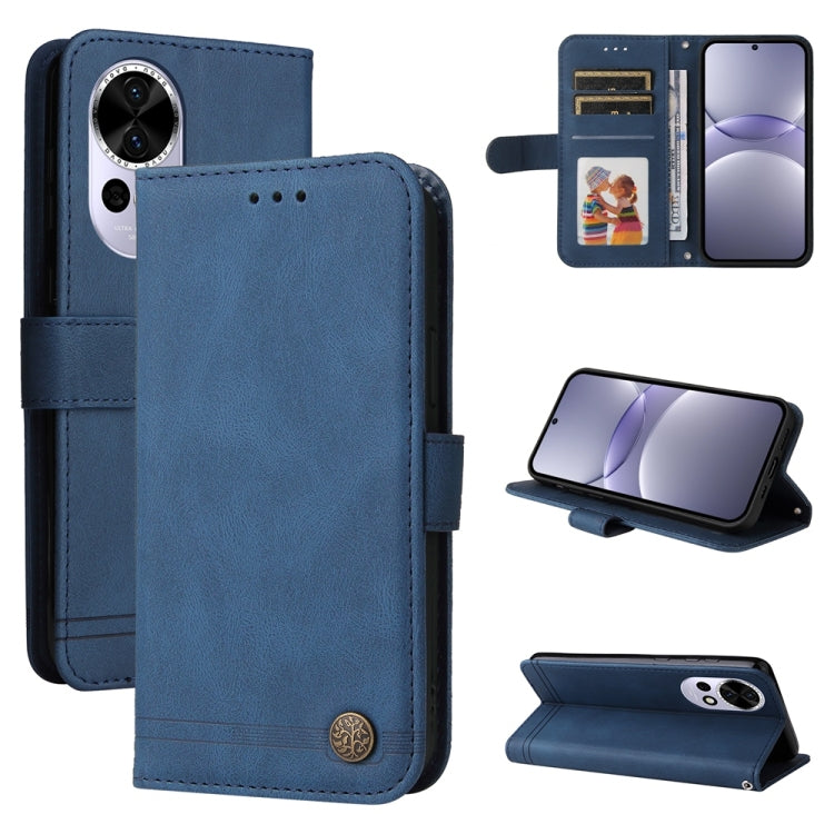 Funda de Cuero para Huawei Nova 13/Nova 12 con Botones de Metal y Diseño Árbol de la Vida (Azul)