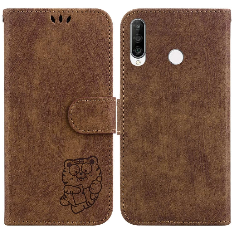 Funda para Huawei P30 Lite Nova 4E de Cuero con Relieve Little Tiger (Marrón)