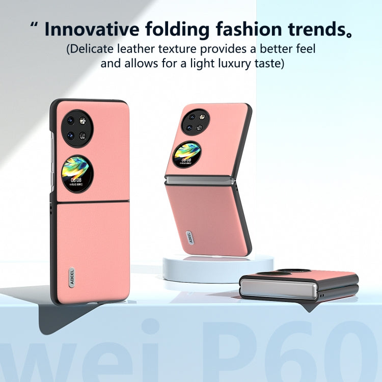 Funda para Huawei P60 Pocket Abeel con Borde Negro Ondulado de Cuero Genuino (Rosa)