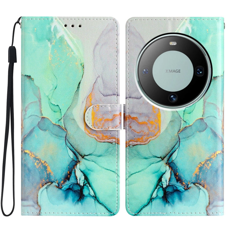 Funda de Cuero para Huawei Mate 60 Pro con Dibujo Coloreado Mármol Verde