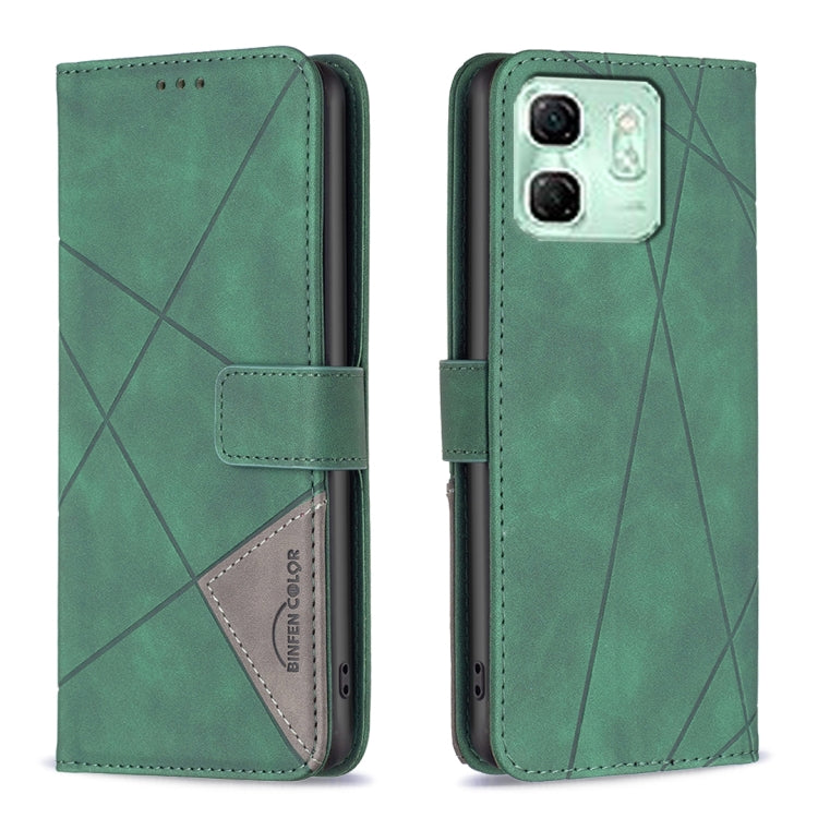 Funda de Cuero Infinix Smart 9 Hot 50I Textura de Rombos Hebilla Magnética (Verde)