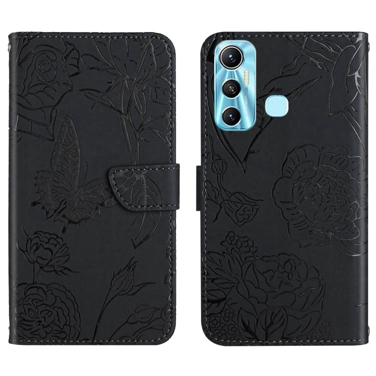 Funda de Cuero para Infinix Hot 11 Ht03 Skin Feel Butterfly con Tapa en Relieve (Negro)
