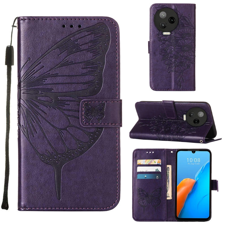 Estuche para Infinix Note 12 Pro 4G de Cuero con Tapa Mariposa en Relieve (Púrpura Oscuro)