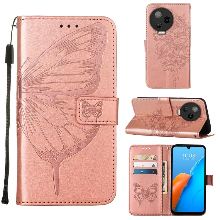 Estuche para Infinix Note 12 G96 de Cuero con Tapa de Mariposa en Relieve (Oro Rosa)