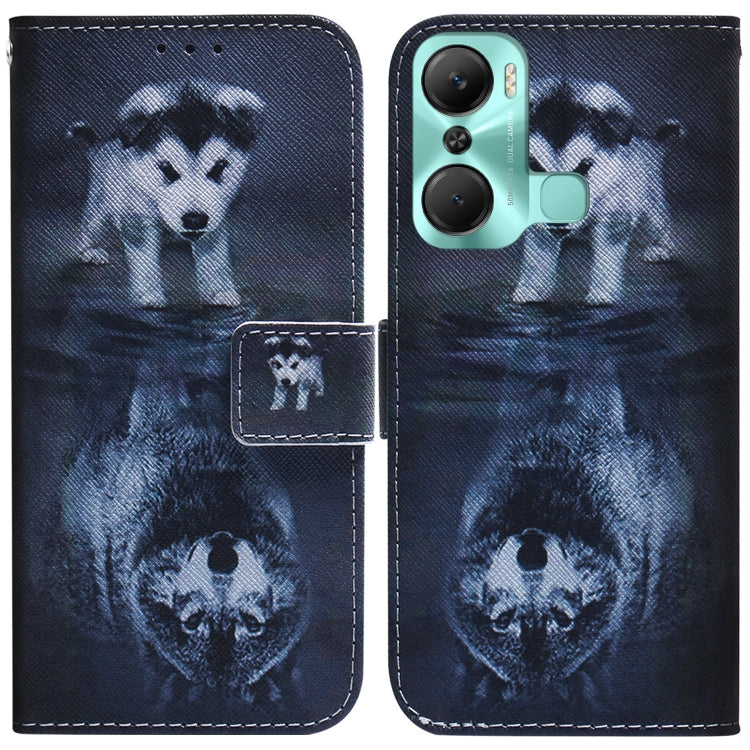 Estuche para Infinix Hot 12 Pro de Cuero con Tapa Horizontal y Dibujo Coloreado (Lobo y Perro)