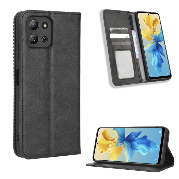 Funda de Cuero para Infinix Hot 11 2022 X675 con Hebilla Magnética y Textura Retro (Negro)