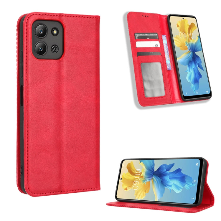 Funda de Cuero para Infinix Hot 11 2022 X675 con Hebilla Magnética y Textura Retro (Rojo)
