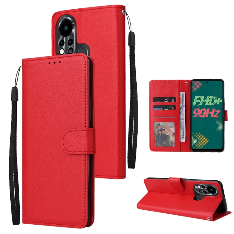 Estuche de Cuero para Infinix Hot 9 Play con Tapa Horizontal y 3 Ranuras para Tarjetas (Rojo)