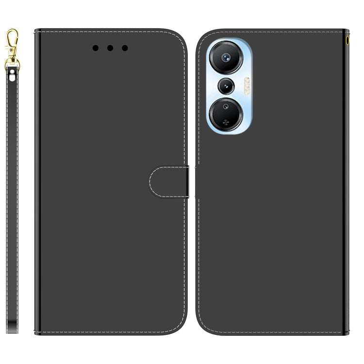 Estuche para Teléfono Infinix Hot 20 de Cuero con Superficie de Espejo Imitado (Negro)